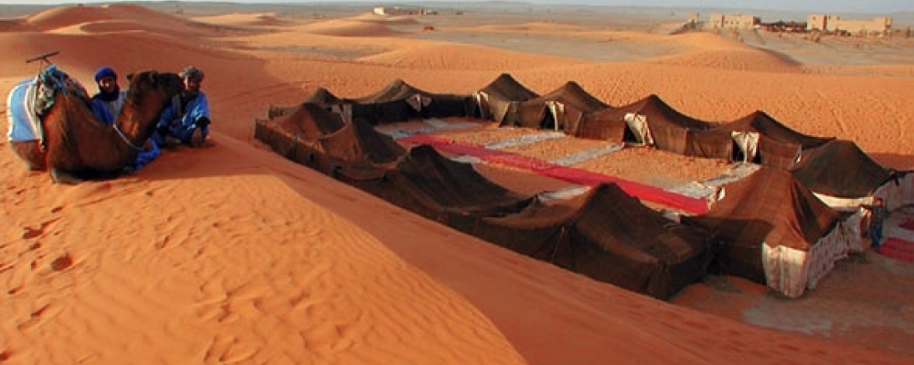 Ramassage aux hôtels à partir de 07h du matin et départ à Ouarzazate, la porte du Grand Sud, en traversant la chaîne montagneuse du Haut Atlas par le col de Tizin-Tichka (2260 m d'altitude). Continuation jusqu'à la kasbah d'Aït Ben Haddou et visite. Continuation vers Zagora par la route, en suivant la rive gauche du Draa.Dîner et nuit sous tente nomade dans l’erg pour 2 ou 4 pax selon demande et disponibilité.