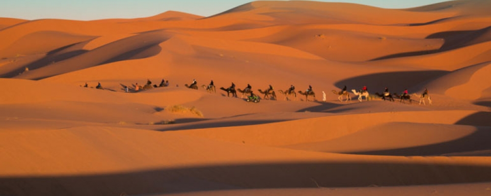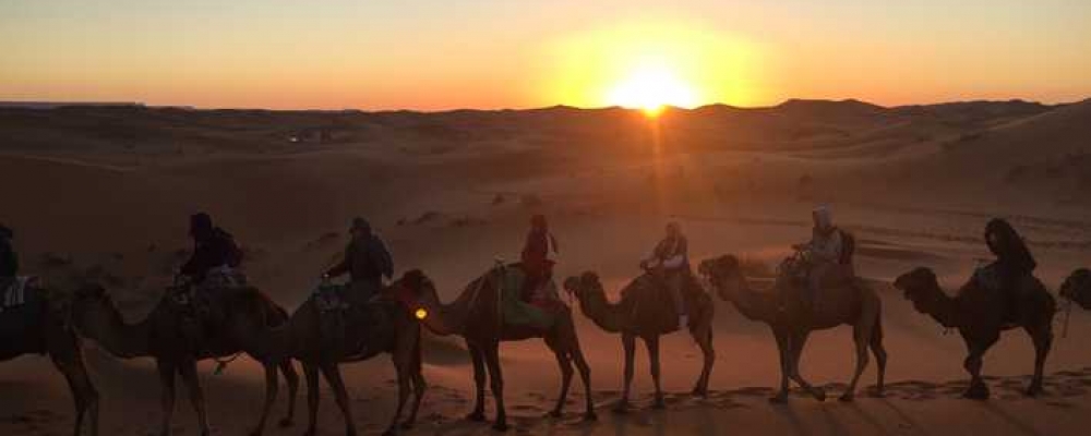 Départ des Gorges du Dadès pour la visite des Gorges de Todra. Puis départ pour Merzouga via Erfoud et Rissani. En fin de journée, départ à dos de dromadaire pour le campement nomade (environ 1h de randonnée à dos de dromadaire). Dîner et nuit sous tente nomade dans l’erg de Chebbi pour 2 ou 4 pax selon demande et disponibilité.